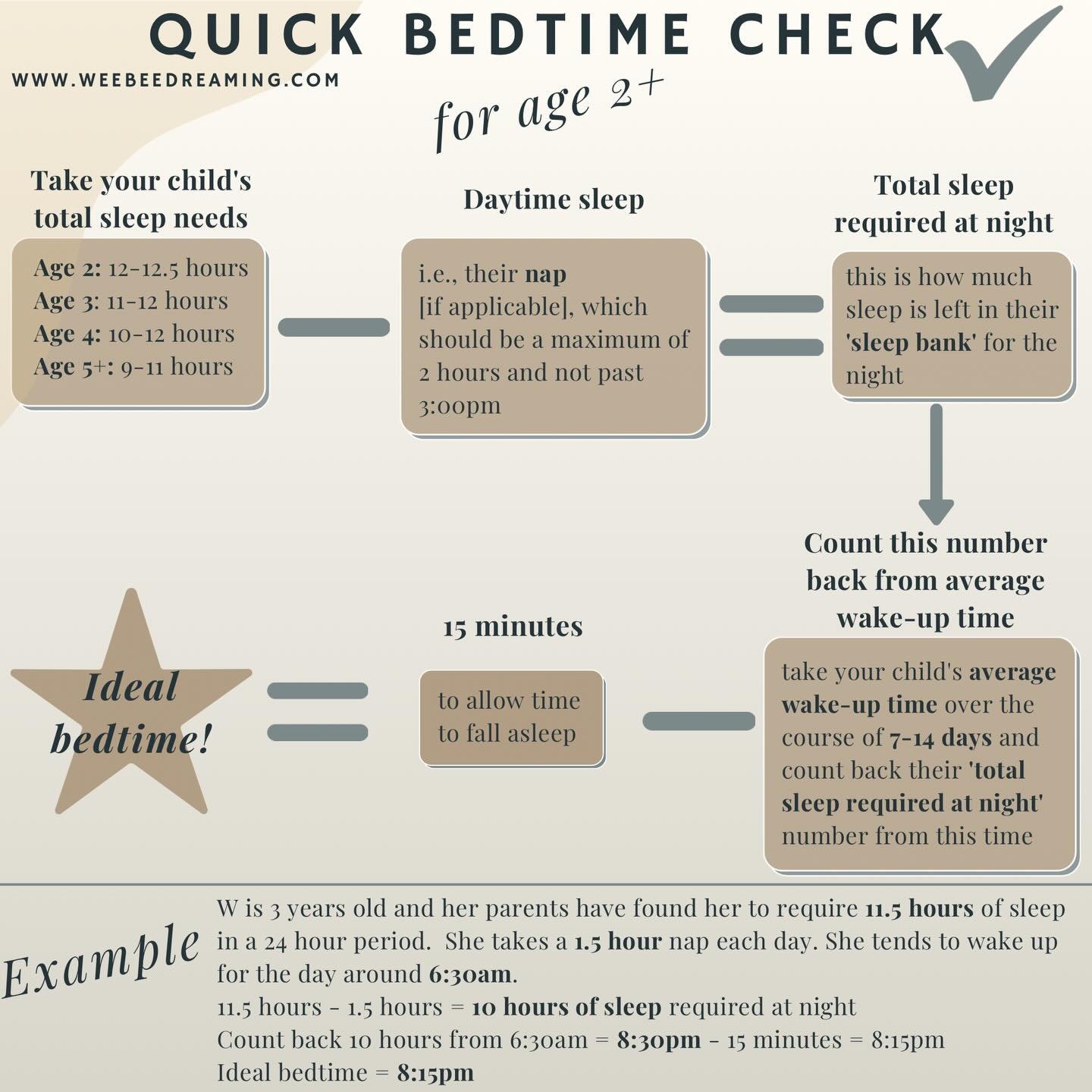 While there needs to be a balance of awake time during the day, it’s a delicate balance to ensure that your toddler is not overtired at bedtime – this is the time of the day that is much more sensitive. In saying that, if you do have a lower sleep needs child, they may be able to handle a bedtime waketime longer than 5 hours, so if you’ve maxed out the awake time before the nap OR if you have a toddler in daycare where you don’t have control over the time of the nap, you may need to experiment with a slightly longer bedtime waketime to see if they can handle that.
